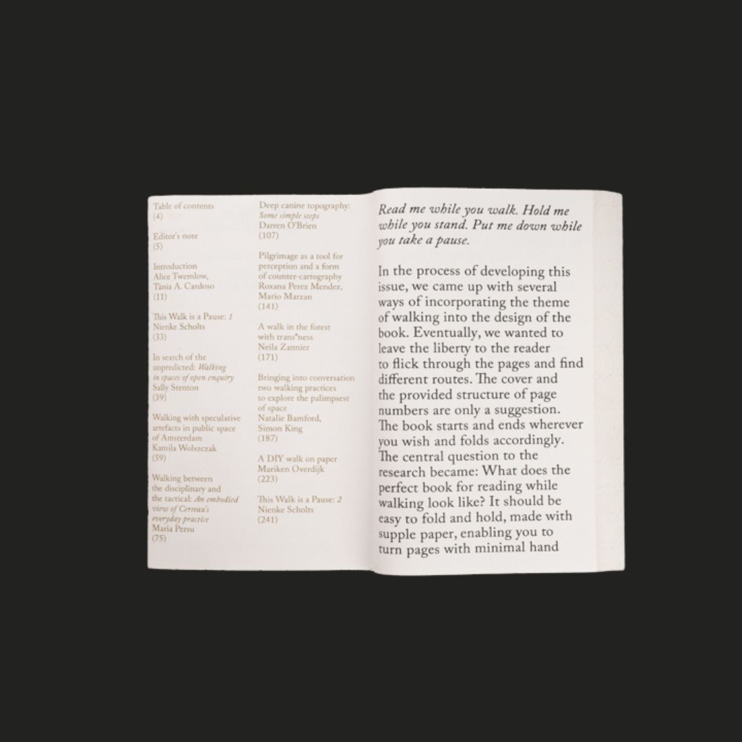 What might be considered the research output of a walking practice? An important caveat to this would be to ask where and when the research occurs in relation to the walk, the walking, and the walkers. Does the walk activate our senses, or do our senses demand that we walk? Since walking involves encounters with various objects and subjects, how might it help us emphasize our connection to the more-than-human world? In addition, walking reveals different entry points to a city. Could walking provide a path toward more socially just urban spaces and commons? With an introduction by design critic and educator Alice Twemlow and urbanist and researcher Tânia A. Cardoso. Published in collaboration with Soapbox Journal.