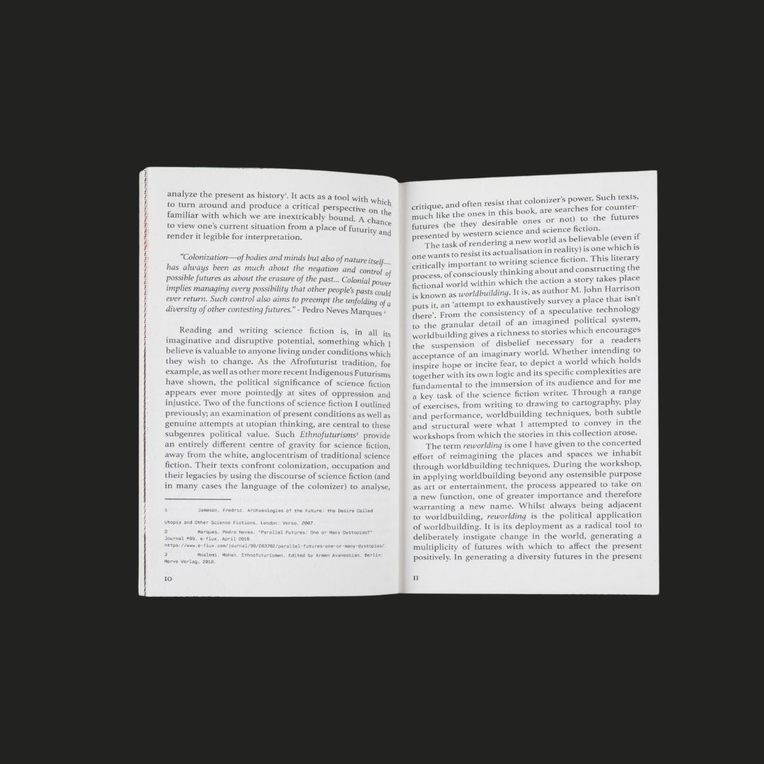 ‘Reworlding’ is the name given to a concerted effort to reimagine the places and spaces we inhabit, by generating a multiplicity of futures with which to affect the present positively. Reworlding takes the notion of worldbuilding beyond any ostensible purpose as art or entertainment and deploys aspects of it as a radical tool to instigate change in the world.
