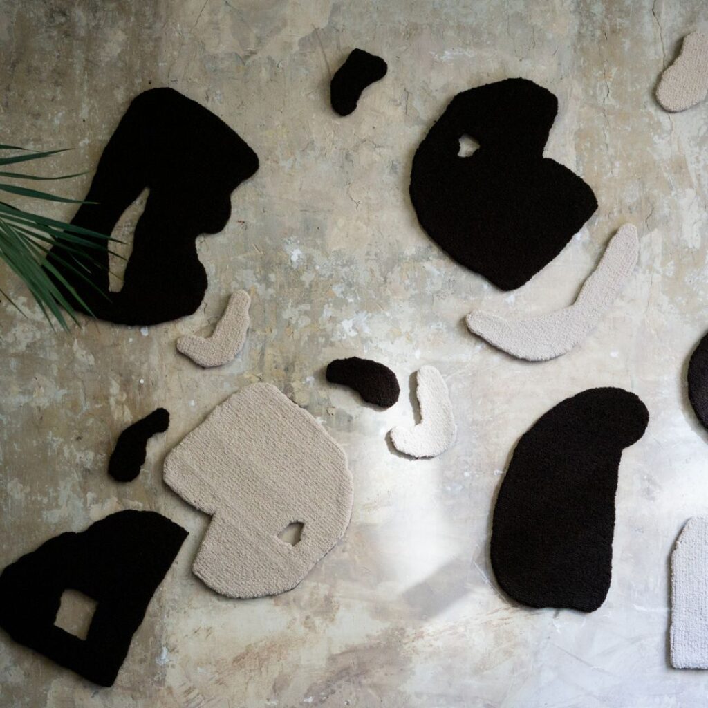 Bec crafted hand-tufted wall hangings in a variety of abstract shapes that can be hung in an endless array of unique configurations. She recorded sounds from her studio, haptic swirls of noise driven by the materials and tools used to create the tuftings. The sounds fascinated Joda and Niklas, who later used these sounds as a source of inspiration in capturing the atmosphere of Bec’s working environment, while incorporating the field recordings into their own tracks.