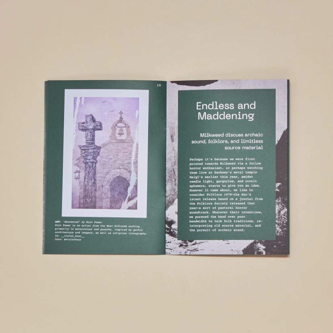 The return of Dark Entries Zine, featuring an interview with composer Hilary Woods, Tanya Kirk from The British Library on the Tales of the Weird series, poetry from Paddy Hornby and Nousha Kiani-Wilkinson, plus phantom paths and a playlist for non-linear perambulations.