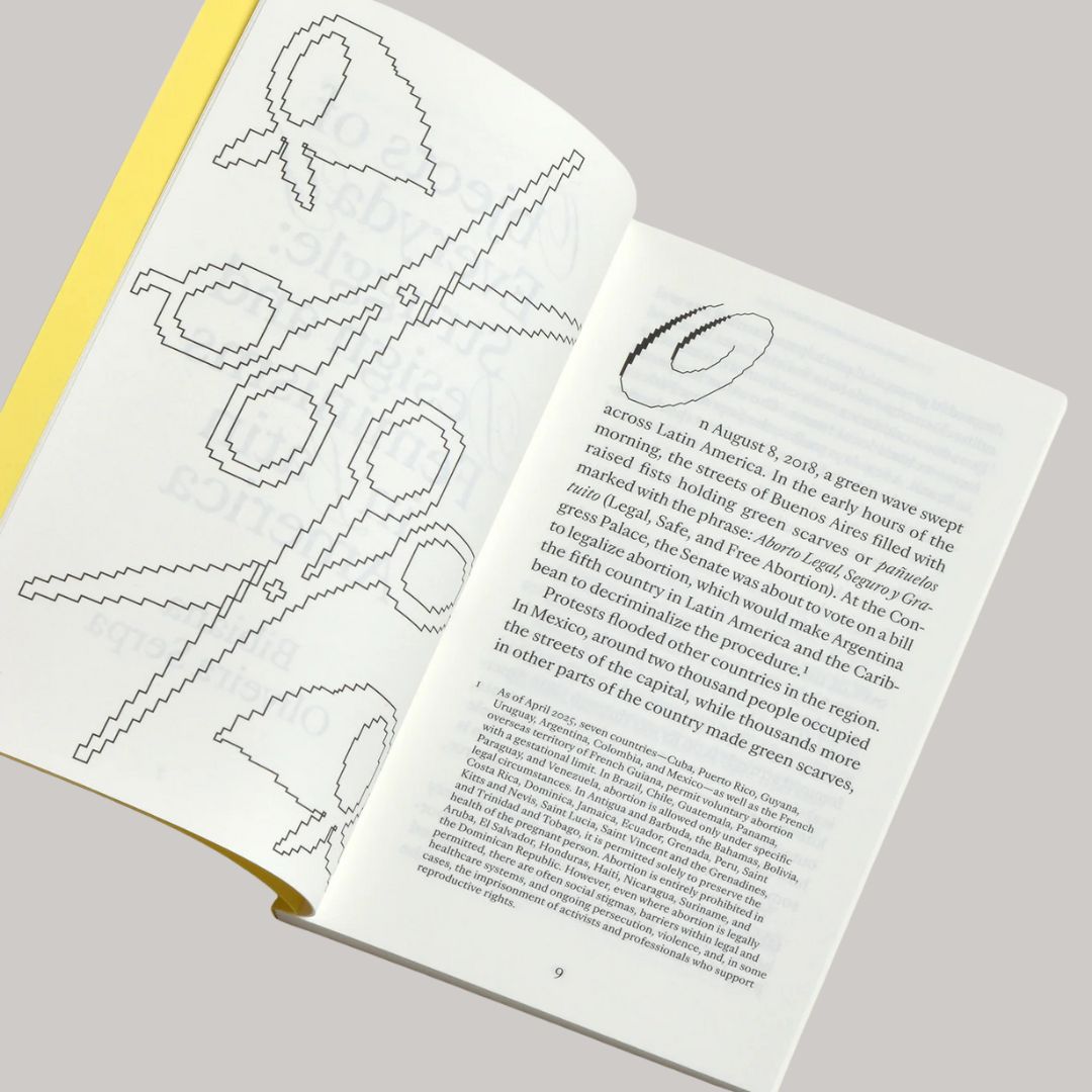 Made in Patriarchy brings together two key texts by design historian Cheryl Buckley. In 1986, Cheryl Buckley argued that design history is shaped by patriarchal biases that trivialize, marginalize, or erase women’s contributions. She advocated for a feminist critique that not only challenges these patriarchal frameworks but also shifts the focus away from individual achievements to recognize women’s roles as designers, consumers, and subjects of representation. Buckley revisited the evolution of the field in 2020, reflecting critically on both its progress and persisting challenges while also addressing gaps in her earlier thinking. As Bibiana Oliveira Serpa notes in her foreword, “questioning one’s own worldview is, in itself, a feminist act.” In her essay, Serpa examines the trajectory of the green pañuelo, a crucial feminist symbol, weaving Buckley’s insights into the broader context of Latin American struggles for justice and equality.