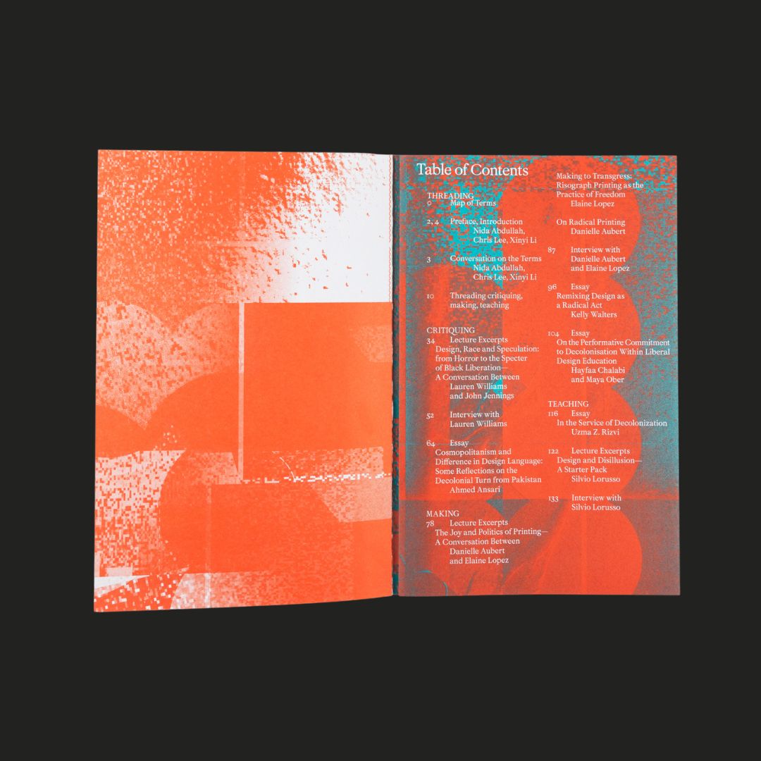 Through pedagogical expressions of rage, generosity, forgiveness, slowness and chaos, contributions in the form of lectures, essays and interviews reflect on the weight of being, and the possibilities—and sometimes impossibilities—of un-doing and un-maintaining the enduring legacies of colonial powers. With contributions by Uzma Z. Rizvi, Ahmed Ansari, Kelly Walters, Hayfaa Chalabi, Maya Ober, Lauren Williams, Elaine Lopez, Danielle Aubert, Silvio Lorusso and John Jennings.