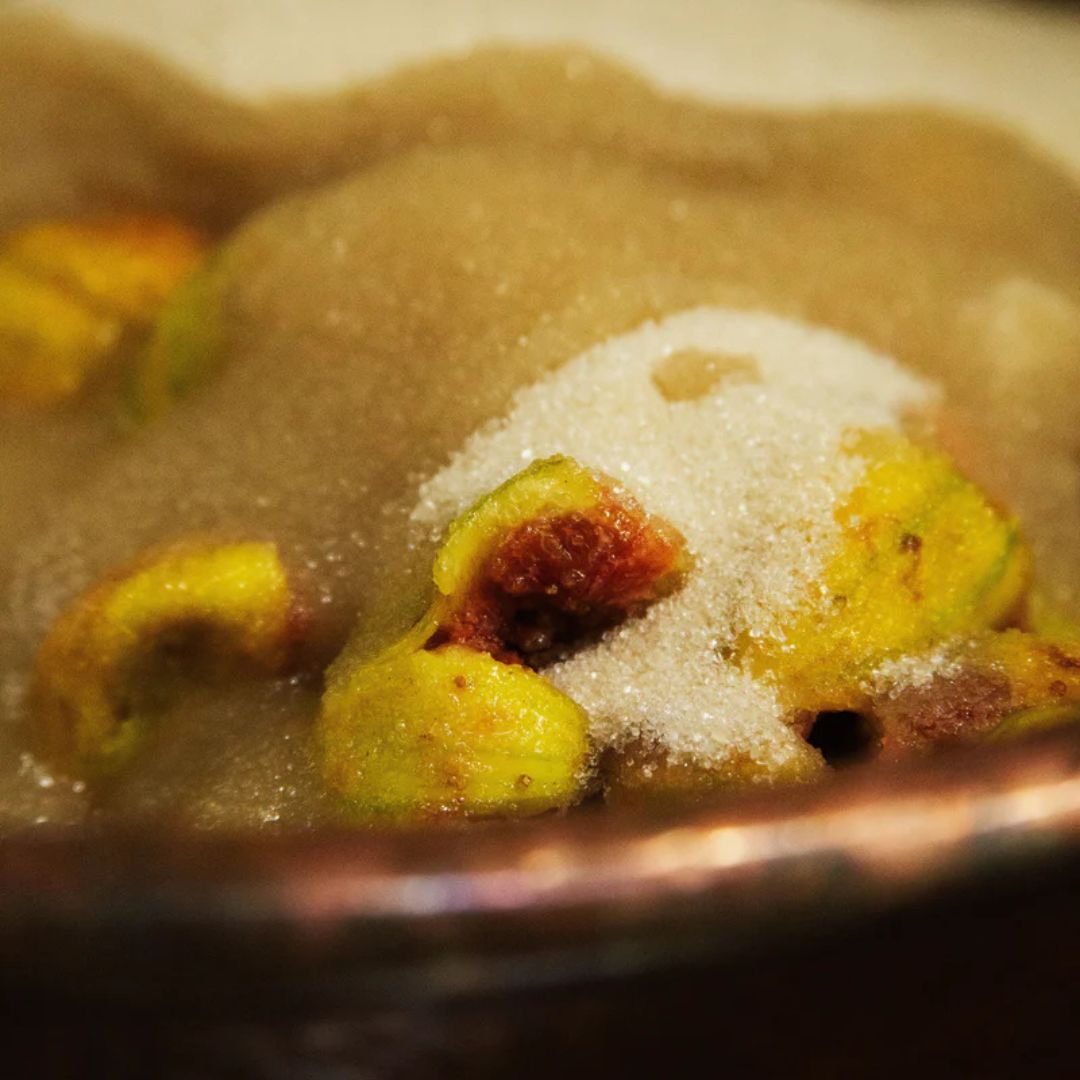 Organic Candystripe Figs, Organic Sugar, Nikolaihof Elderflower Syrup, Organic Lemon Juice