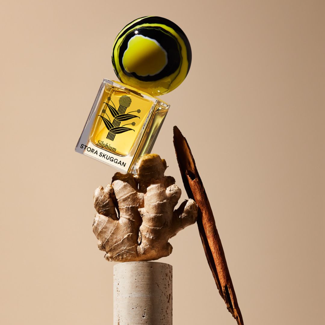 A modern-day rendition of the extinct plant Silphium, set against a background of ancient incense, woods, and leather.