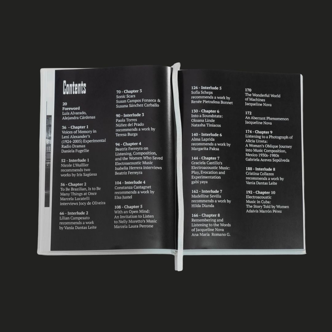The official history of 20th-century avant-garde electronic music has been predominantly narrated from the point of view of Anglo-American and Western European experiences and largely remained focused on its male protagonists. To destabilize this history, this editorial project presents a collection of perspectives, essays, interviews, archival photos, and work reviews centered on the early electronic music production by Latin American female creators, who were active from the 1960s to the 1980s. The book also brings us closer to the work of a new generation of researchers who have focused on offering a non-canonical reading of the history of music and technology in Latin America. The publication is the record of a new vision, an account of the condition of being a woman in the field of music technology at a time when this was a predominantly masculine domain.