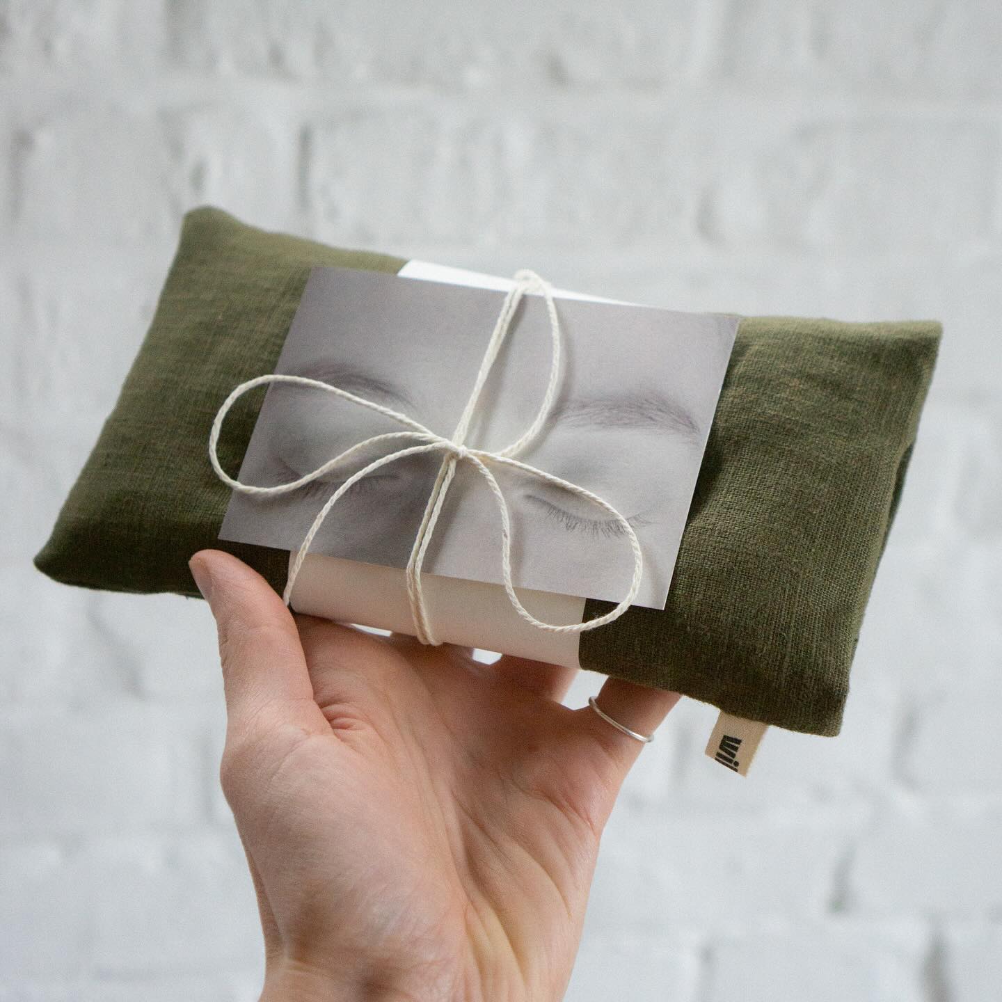 An eye pillow filled with buckwheat, chamomile, lavender, and lemon verbena. Weighted and scented, it rests gently over the eyes. Made with care in Antwerp together with Naaipunt, a social atelier focused on sustainability and textiles.