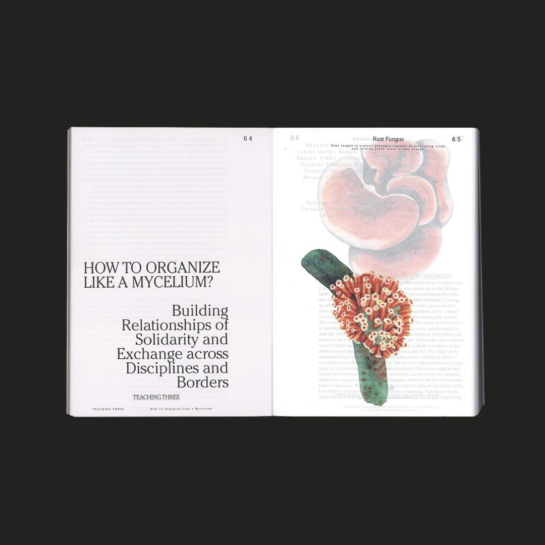Every chapter is phrased as a question. They do not lead to answers but to twelve teachings addressing, for instance, collaboration, decoloniality, non-linearity, toxicity, mobilization, biomimicry, death, and being non-binary. Simultaneously, it ventures deeper into the world of fungi. The teachings from the fungus may inspire artists, collectives, organizations, educators, policymakers, designers, scientists, anthropologists, change-makers, curators, urbanists, activists, gardeners, community leaders, farmers, and many others to become more fungal in their ways of working and being.