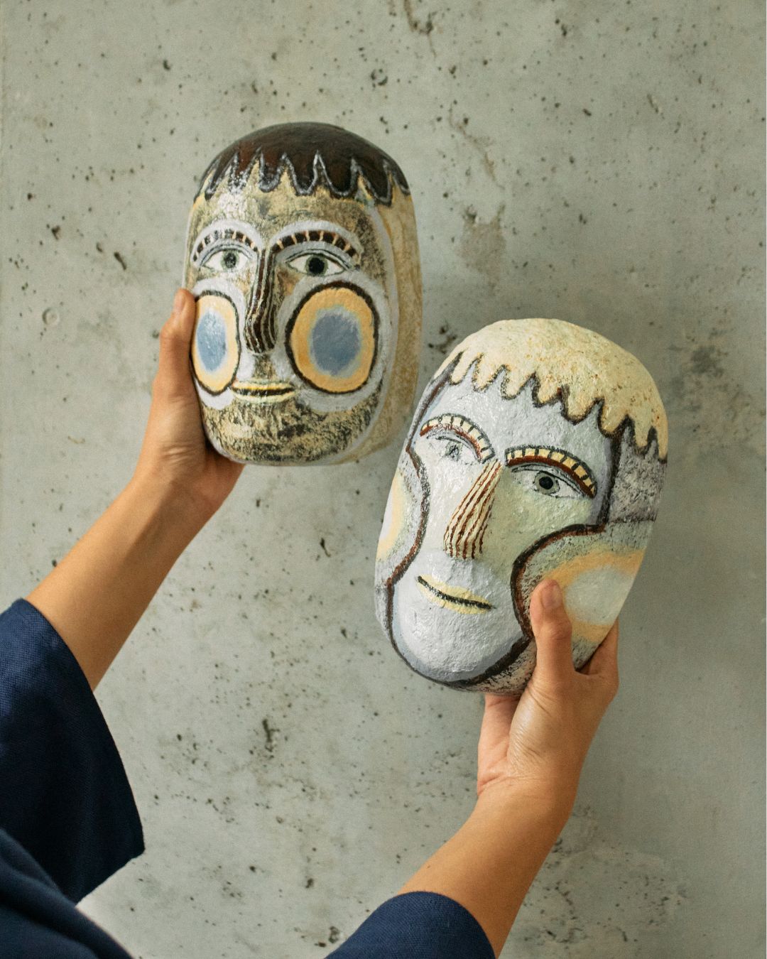 Since their graduation project in 2012, they have been creating handmade papier-mâché masks as both objects and expressions of identity, playing with color, pattern, and asymmetry to bring each character to life.