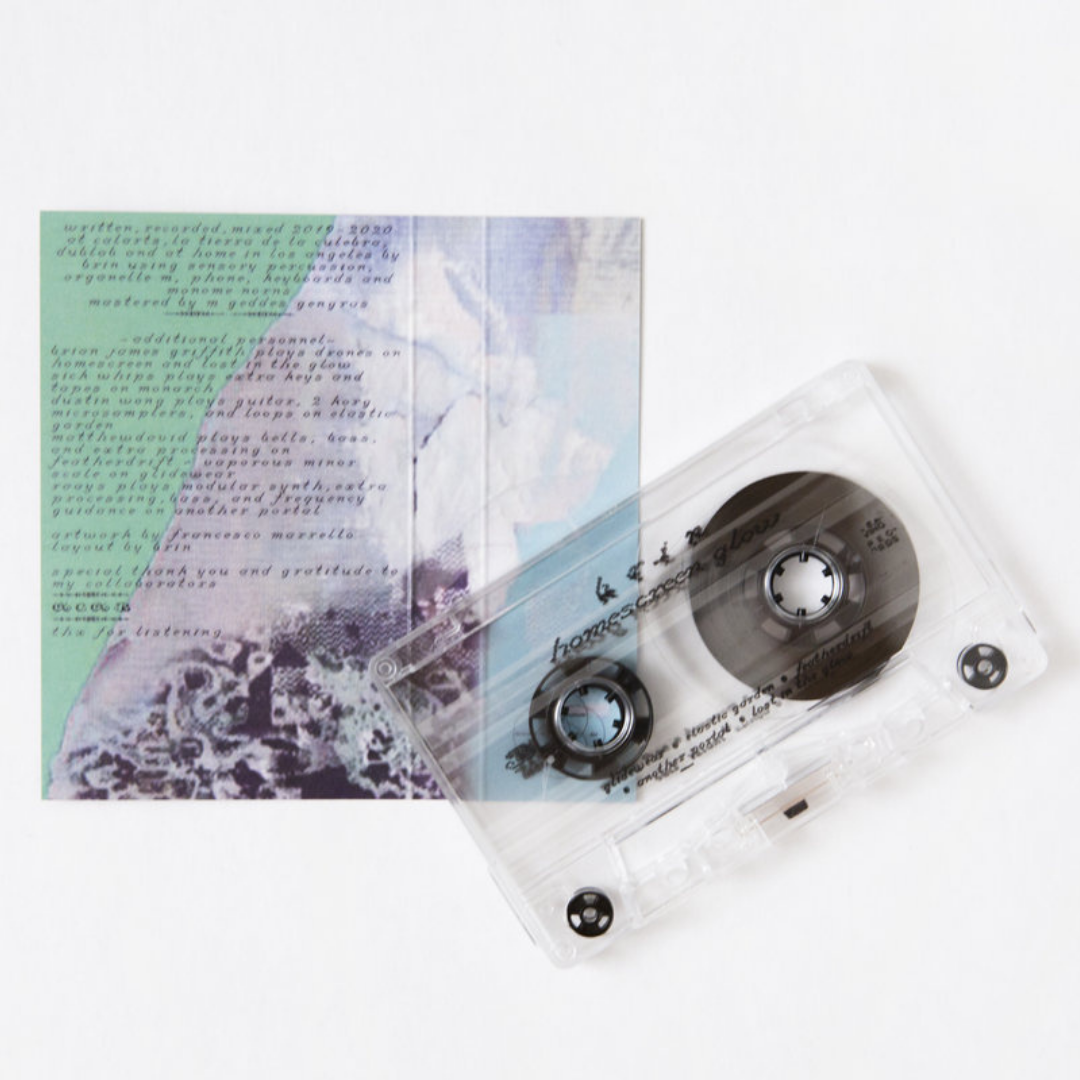 Brin is a strand of rhythmic audio expressionism for the online world through the lens of LA-based artist Colin Blanton. Homescreen Glow, the full-length debut on Leaving, is a collection of solo & collaborative explorations refined to a focused sound world of leafy-chimed blooming digital gardens, layered inner-clock zero grid beats, and buoyant cloud smears with toasted edges.