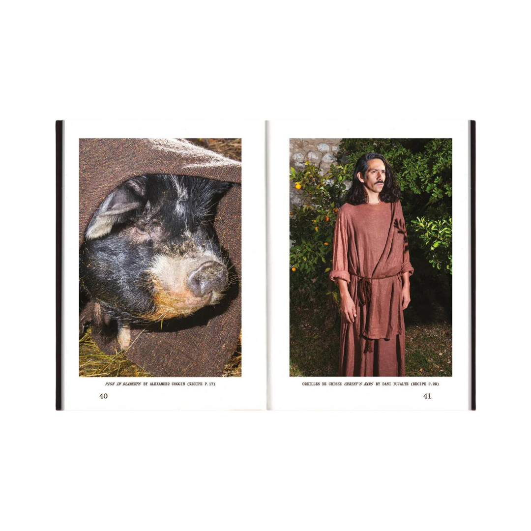 From "Pigs in a Blanket" to "Nun's Farts Devils on Horseback," The Cookbook pans its way across the world, looking at how these dishes earned their names. Equal measures historical, visionary, and surreal, the book depicts each recipe as its literal namesake, alongside the backstory and early recipes.