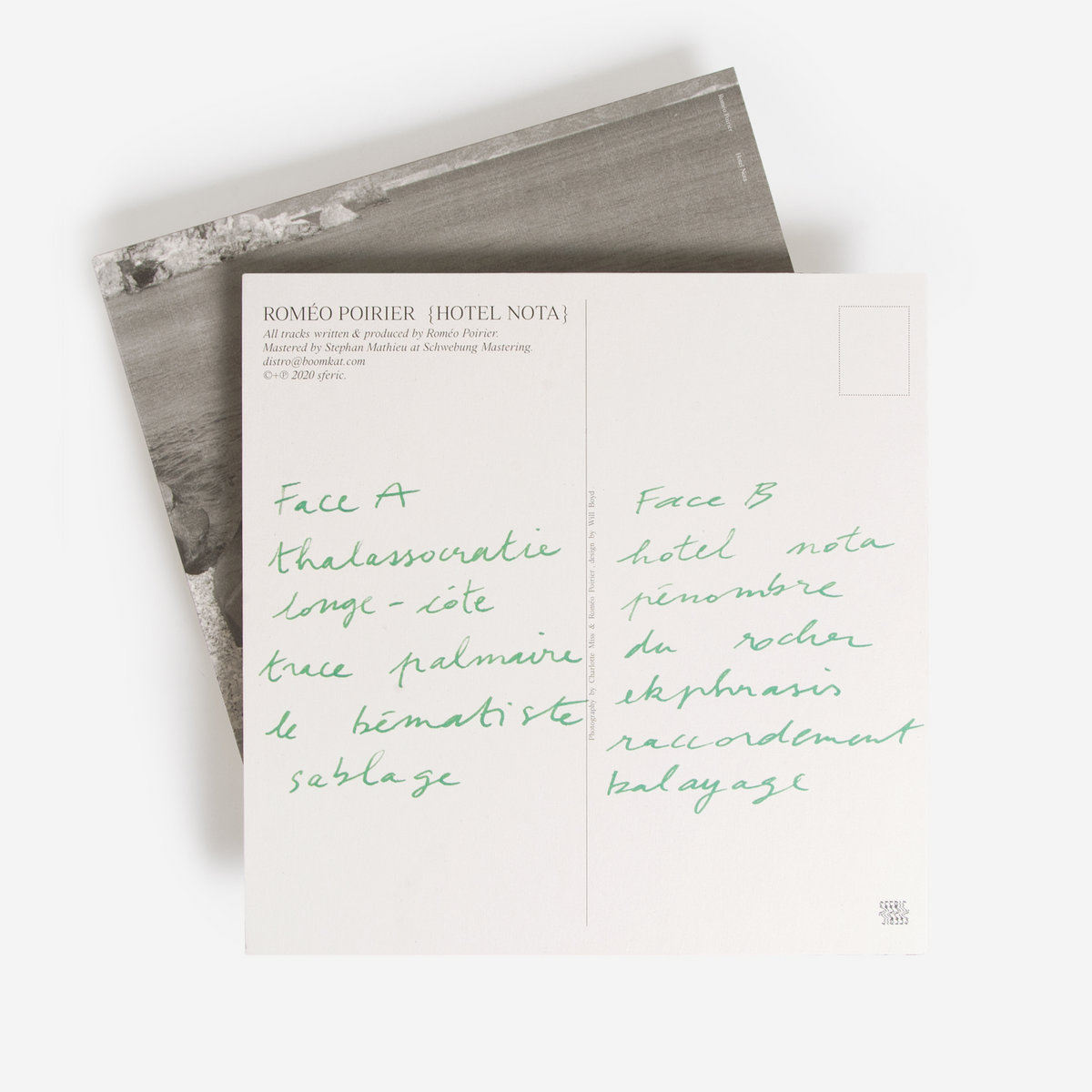 Roméo Poirier debuts on Manchester’s sferic label with an evocative and beautiful round-trip to Venusian beaches and back. Working in the crème-concrète and exotica style that made his ‘Plage Arrière’ a cult hit in 2016 (and on vinyl in 2019), Poirier conjures gauzily impressionistic beach scenes and heady sunny day feels from a fine mix of granular processing and bleached-out Balearic tropes in the dilapidated but deeply charming environs of ‘Hotel Nota’. Armed with a suitcase of floral shirts, trunks, paperbacks and a laptop, he checks into a lounging, relaxed and lush sound that appears to shift and shimmer with the iridescent aftereffects of a daiquiri or the warm, turquoise waters by his feet.